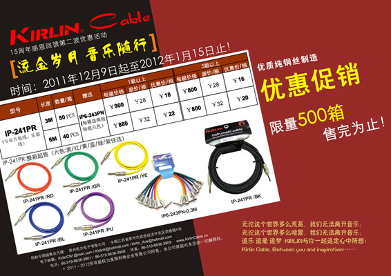 “流金岁月,音乐随行”,KIRLIN 15周年第二波优惠促销活动于12月9日正式开始!