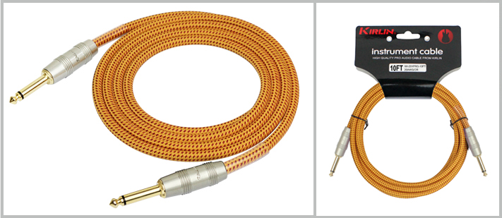 科林高级彩色软丝编织护套, 无噪音吉他连接线:香槟色镀金插头 6.3MM - 6.3MM