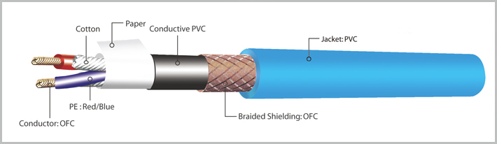 科林亚光蓝色PVC护套,无噪音麦克风线:卡侬公 - 卡侬母