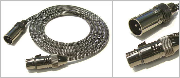 科林高级彩色软丝编织护套, 无噪音麦克风线: 黑珍珠色卡侬公 - 卡侬母