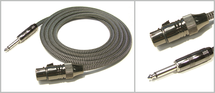 科林高级彩色软丝编织护套, 无噪音连接线: 黑珍珠色卡侬母 - 6.3MM