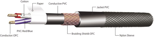 科林高级彩色软丝编织护套, 无噪音麦克风线:卡侬公 - 卡侬母