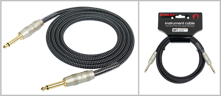 科林高级软丝彩色编织护套, 无噪音吉他连接线:香槟色镀金插头 6.3MM - 6.3MM