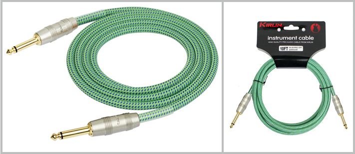 科林高级彩色软丝编织护套, 无噪音吉他连接线:香槟色镀金插头 6.3MM - 6.3MM