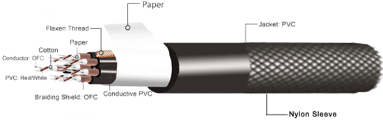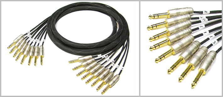 科林八芯线:黑色编织护套, 香槟色镀金插头, 6.3MM三芯 - 6.3MM三芯