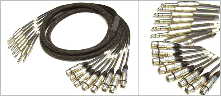 科林八芯线:黑色编织护套, 香槟色镀镍插头, 6.3MM三芯 - 卡侬母